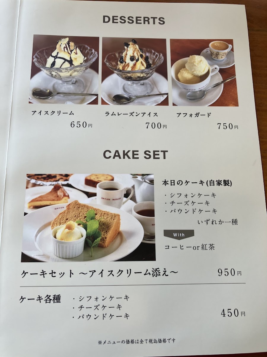 シフォンケーキ、チーズケーキ、パウンドケーキのいずれか一種&コーヒーor紅茶