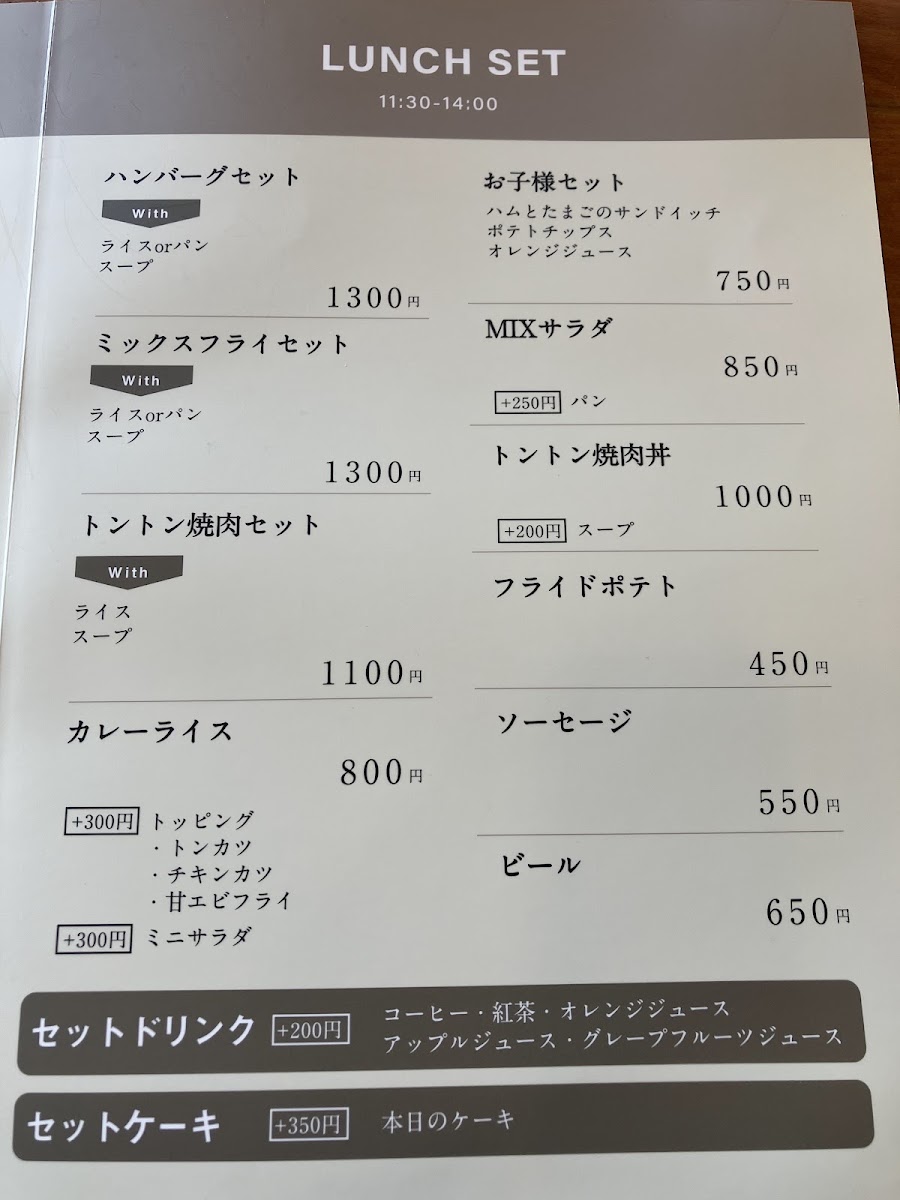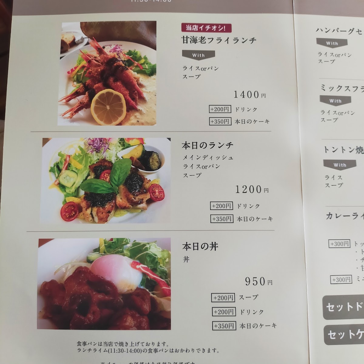 本日のメインディッシュ、ライスorパン、スープ。ドリンク付きは+200円、本日のケーキ付きは+350円。 無くなり次第終了です。